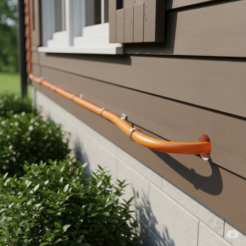 - The installer will drill a 3/8" hole through an exterior wall of the home into a room that the client would like the router to be placed, if possible. A thin, black, outdoor-rated fiber line will be run from our box that was placed on the exterior of the home, directly through the drilled hole. The fiber line will be securely attached to the side of the home, not in conduit or underground.