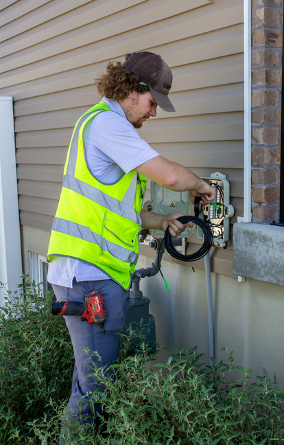 - The installer will drill a 3/8" hole through an exterior wall of the home into a room that the client would like the router to be placed, if possible. A thin, black, outdoor-rated fiber line will be run from our box that was placed on the exterior of the home, directly through the drilled hole. The fiber line will be securely attached to the side of the home, not in conduit or underground.