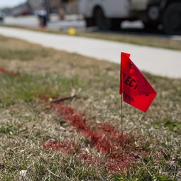 Prior to the start of construction, Blue Stakes will come to the area to mark existing utility lines. This process is managed by a separate organization. Utilities are marked to ensure the safety of residents and construction crews and to prevent damage that would result in service interruptions. You’ll see spray painted lines and numerical markings on streets, sidewalks, and grass. Small flags will also be placed on lawns, parking strips, and other areas to assist in marking the lines.